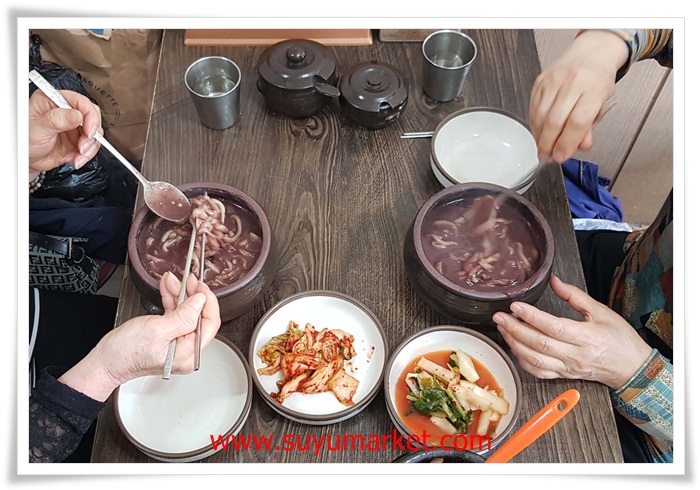 인기메뉴는 팥옹심이와 뚝배기 해물칼국수다.