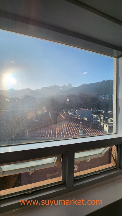 센터 창밖에 북한산 인수봉이...