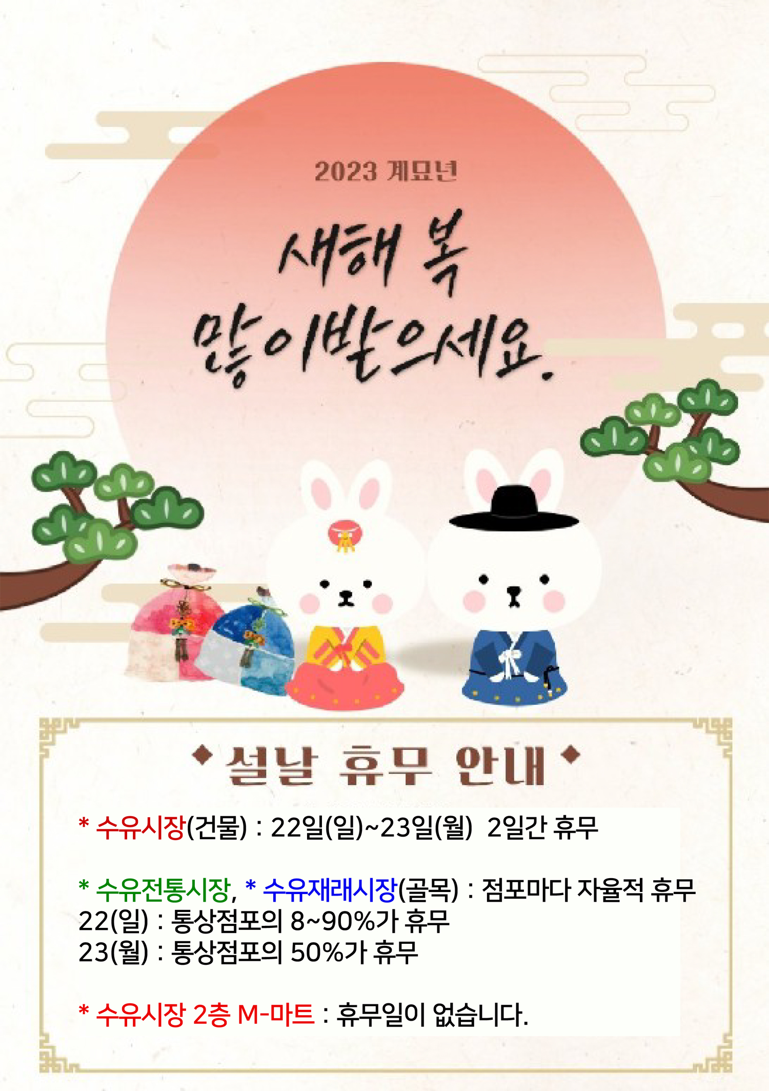 | 24년 수유시장 설명절 휴무일 안내 (34) | 2024.02.08 |