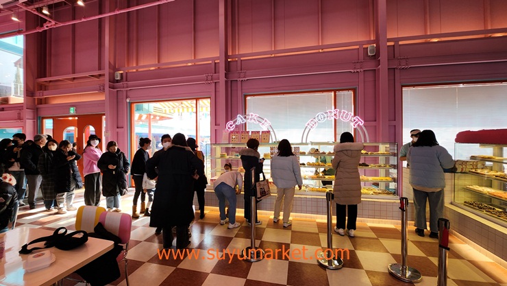 방문해보니 배경과 이미지가 미국에서 들어온 갓 도넛가계처럼 스카이블루와 핑크색으로 화사하게 안팎을 꾸몄다.