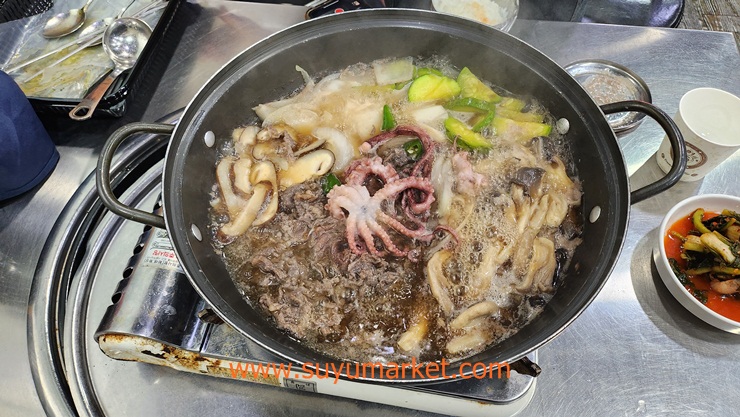 한국사람이 가장 좋아하는 음식중에 하나인 불고기전골에 낙지 한마리를 넣었습니다.