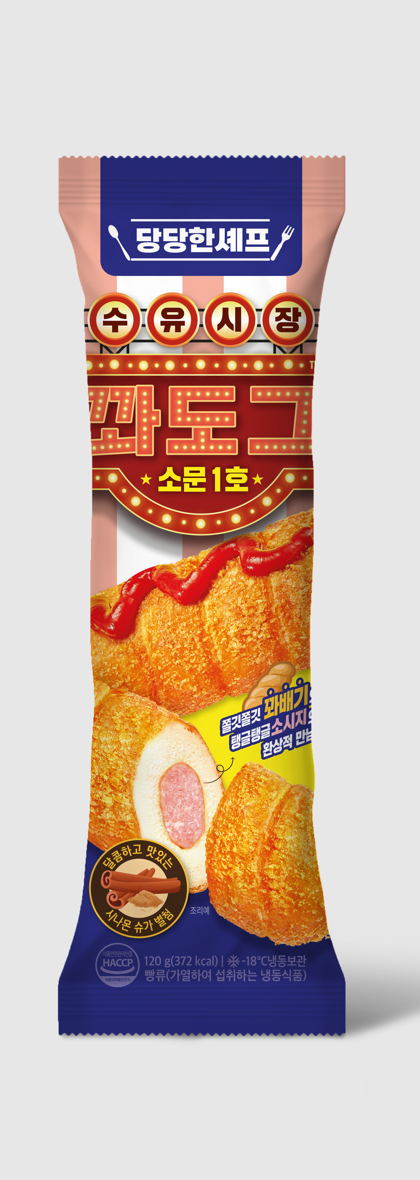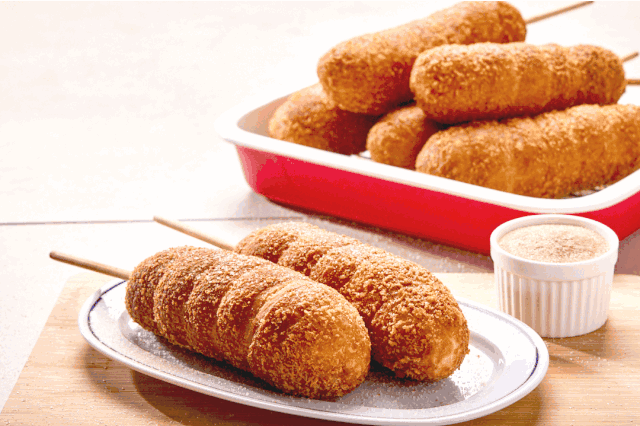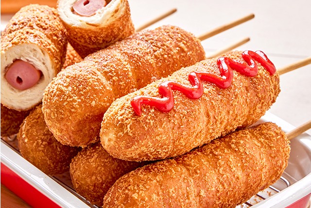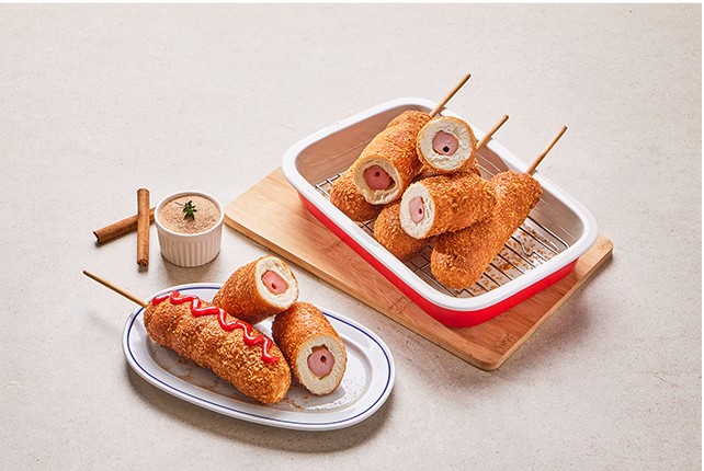 이를 양질의 소시지에 꽈배기 반죽을 돌돌 만 형태로 만들어서