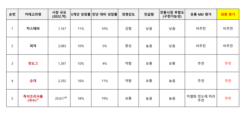 - 2차 5개 카테고리 선정 (향후 시장성장률, 경쟁률 반영)