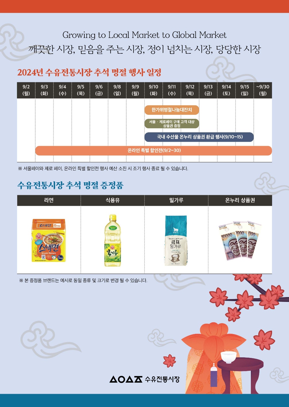 추석명절에 수유전통시장의 온.오프라인 매장에서 추석 성수품을 구입하시고,