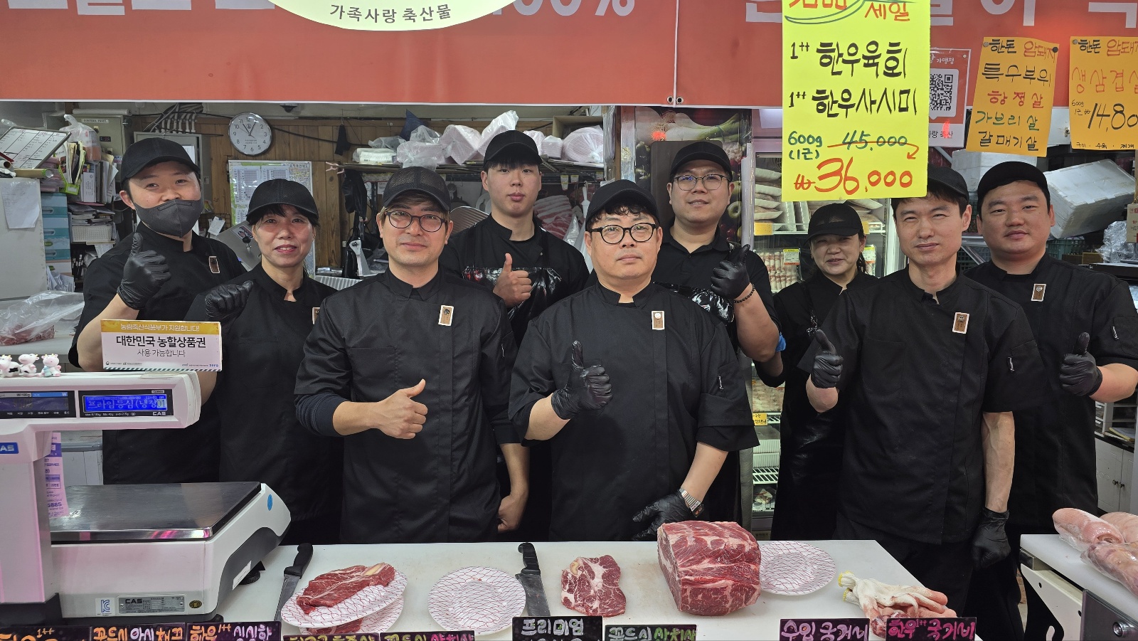 일단 현재의 직원수만 보더라도 수유시장내에 10명의 직원을 두고 영업하는 있는 점포는 '가족사랑축산'이 유일합니다. 아래의 사진을 찍을 당시 당일 2명이 휴무라 2명이 빠졌지만, 주부사원 포함 장정들만 10명이 매장판매직원으로 근무하고 있고, 본인을 포함하면 11명이 정육점을 운영중입니다.