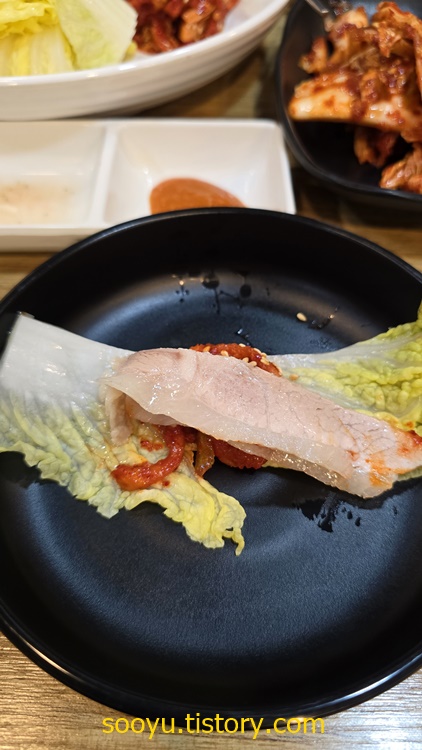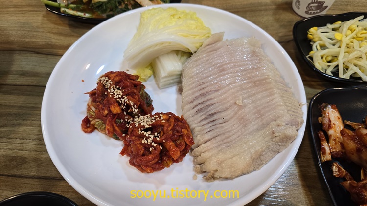 특히 보쌈용 돼지고기 수육은 가브리살이라고 하며...살코기와 하얀지방이 어우려져서 보기도 좋고, 맛도 좋았습니다.
