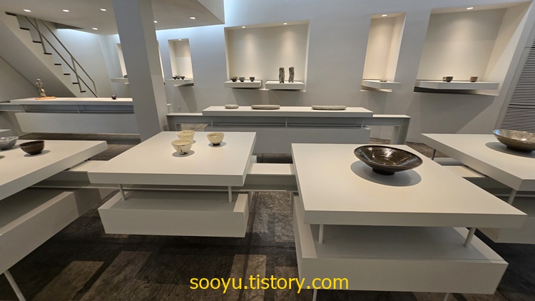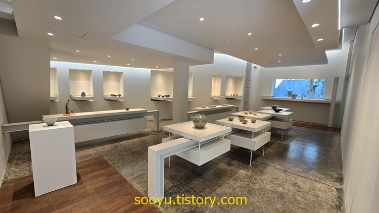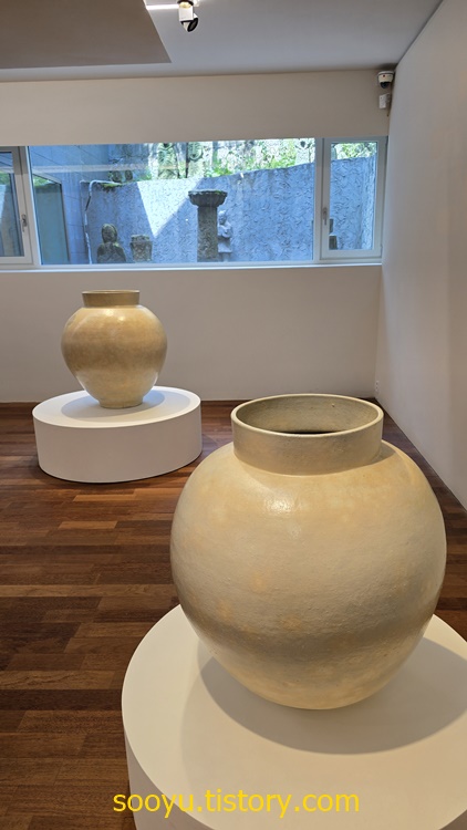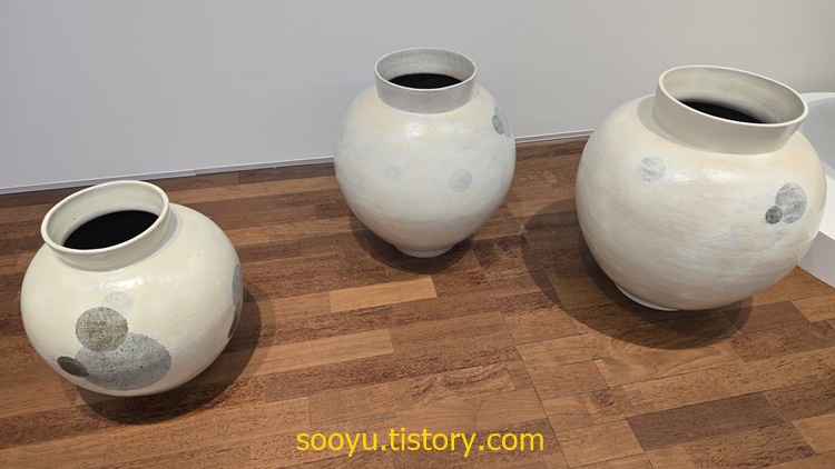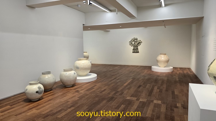 전에 보았던 익숙한 도자기보다 훨씬 더 큰 달항아리와 대형 도자기작품들로 하얀색과 밝은 흙색에 투박한 문양이 개인적인 정서에 맞았고, 투박하지만 친근하게 다가왔습니다.