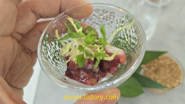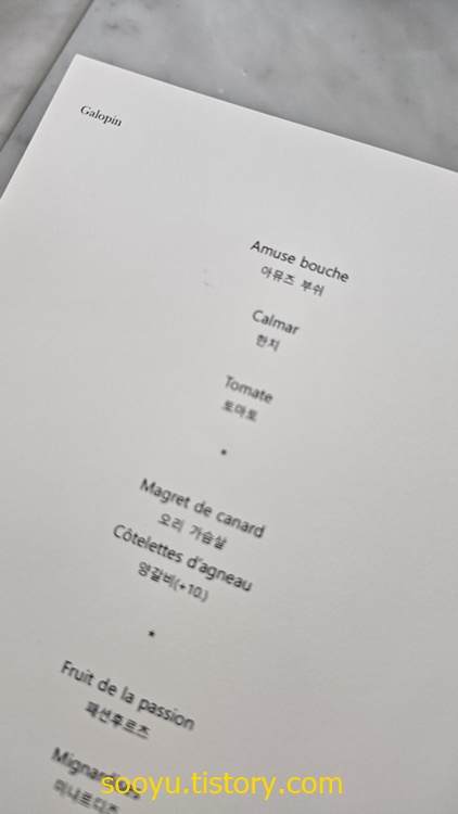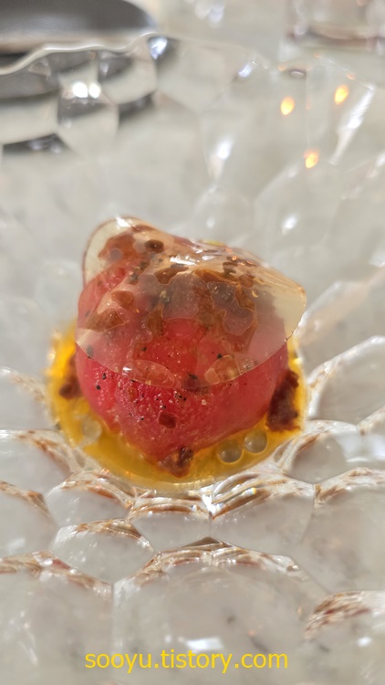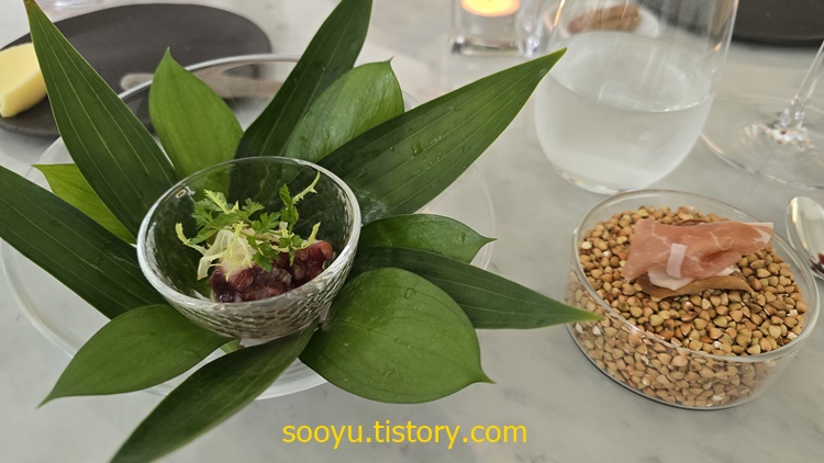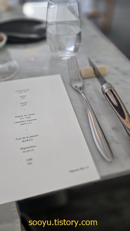 음...각 코스때마다 부부가 하얀세프의 복장으로 번갈아가면서 조리하고, 번갈아가면서 서빙하며 음식을 설명해 주는 모습이 보기 좋았습니다.