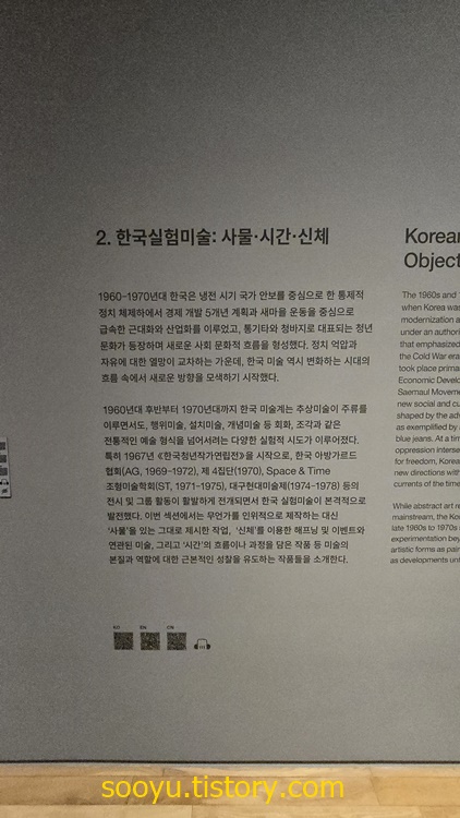 2. 한국실험미술 : 사물 · 시간 · 신체 - 미술관 설명글