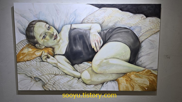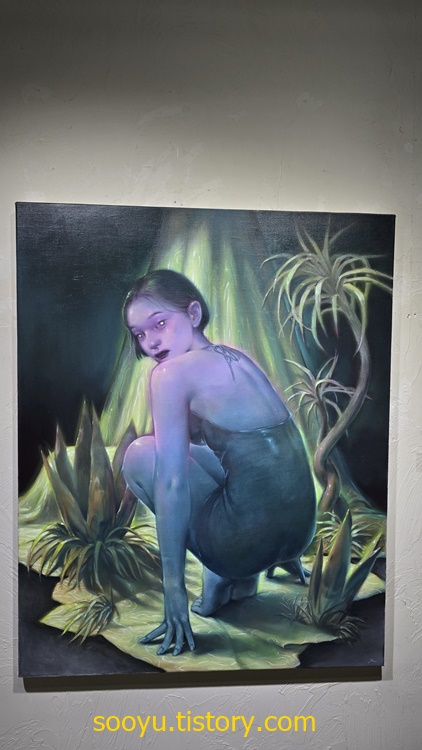 이번 전시는 사람과 사람사이에 존재하는 아주 섬세한 감정의 결을 '숨결'이라는 감각적인 매개로 풀어냅니다. 미치다 유타의 그림속 인물들은 서로를 바라보거나, 혹은 외면하며, 그 사이에 흐른 시선과 감정, 오해와 이해를 드러냅니다. 'her'와 'who'가 마주하는 순간마다 관계의 온도는 미묘하게 변하고, 그 경계는 흐릿해집니다.
