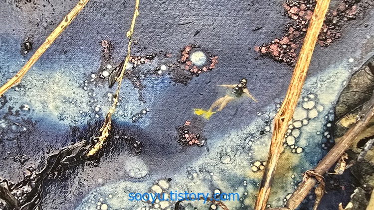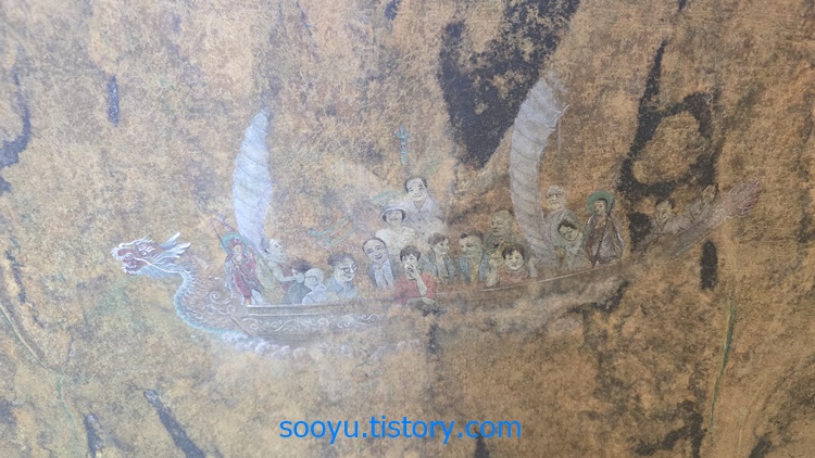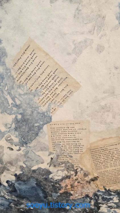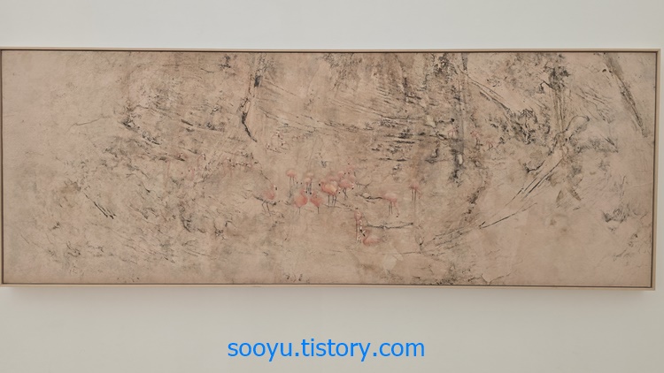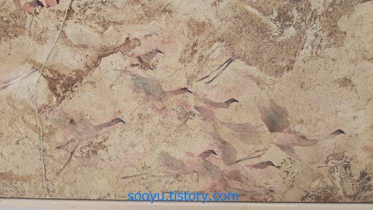 한지에 다양한 고전적인 색감들로 가득차 있어서 당근 동양화, 한국화임을 알 수 있었습니다.