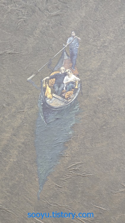 그런데 자세히 보면 볼 수 있는 작은 사람들의 이미지가 고전적인 색감의 배경에 맞추어져 그려져 있었습니다.
