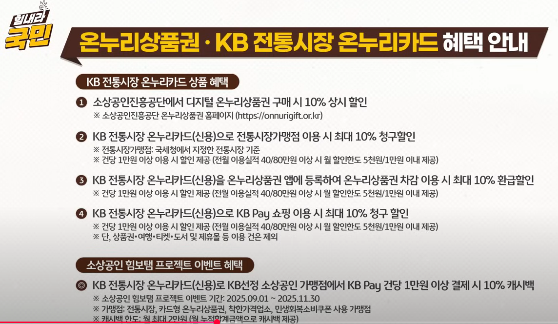 2. KB 전통시장 온누리카드(신용)으로 전통시장가맹점 이용시 최대 10% 청구할인