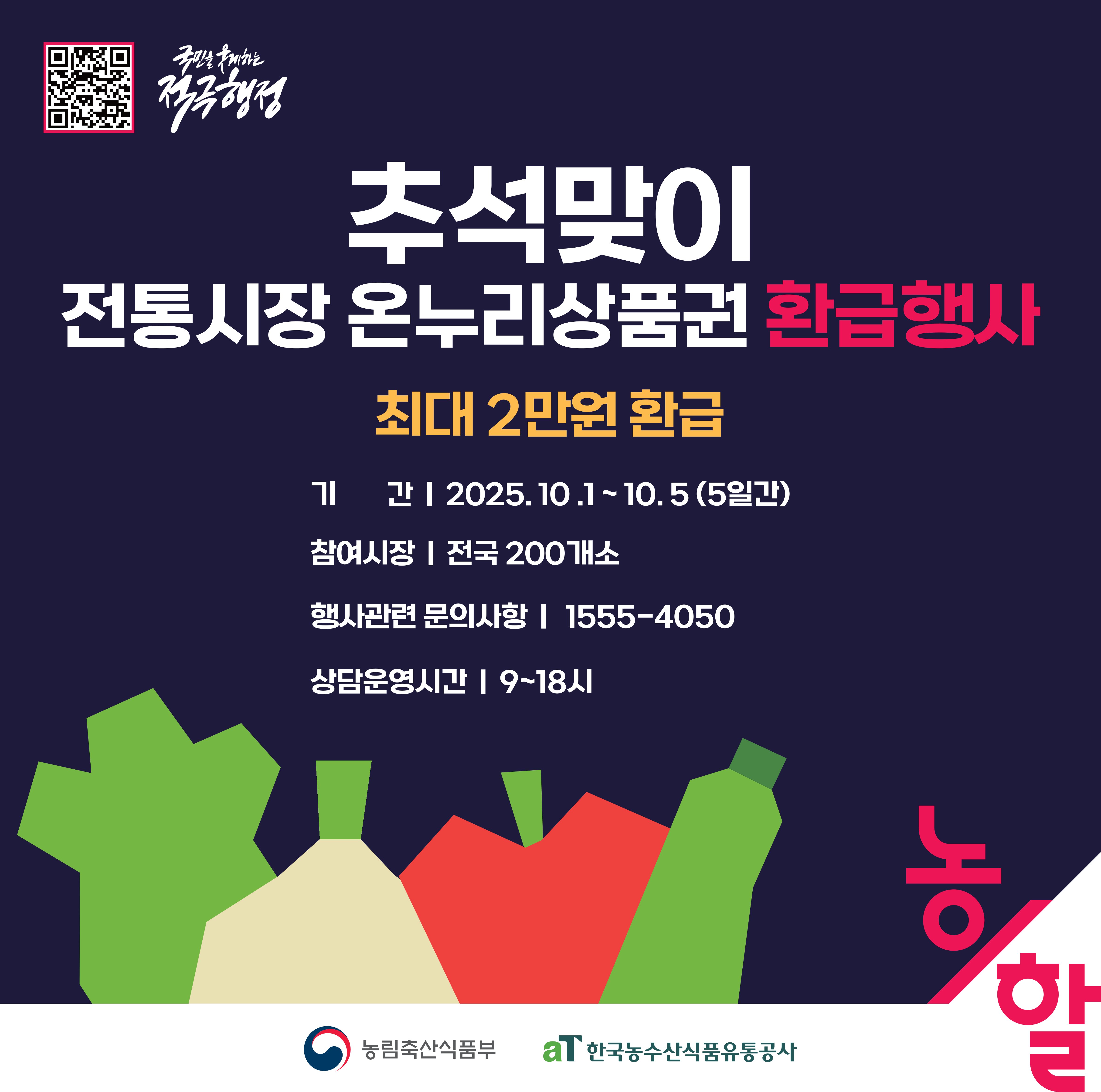 추석맞이 농축산물 할인지원 전통시장 환급행사를 농림축산식품부 지원으로 진행합니다.
