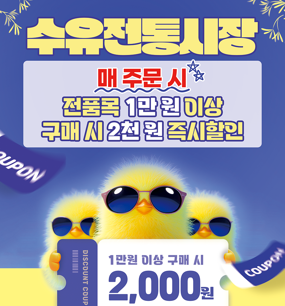 | 수유전통시장 '놀장' 에서 구매시 2,000원 쿠폰할인 + 디지털 온누리상품권사용시 20%할인 = 최대 40%할인 (1) | 2025.05.20 |