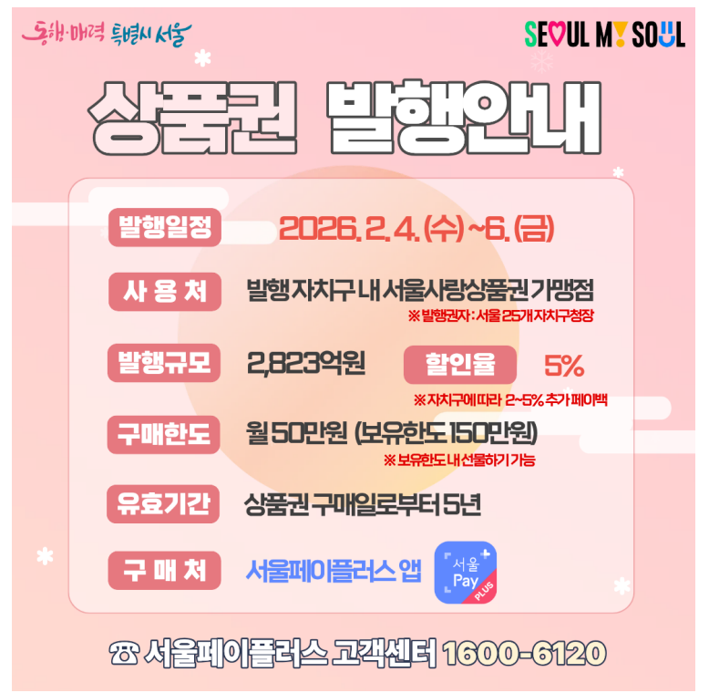 서울의 각 지자체에서는 '서울사랑상품권'을 총 2,823억원의 규모로 2월초에 발행하였습니다.